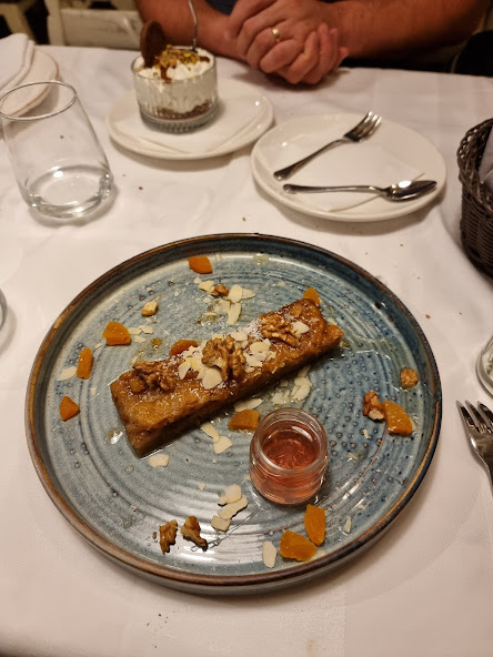 J’ai choisi un plat de boulettes de viande avec de la pistache et il était tellement bon! J’adore les épices utilisés dans la viande en Europe de l’est, cela relevé vraiment son goût! Mon chéri a choisi le dolma japrak, des feuilles de raisin remplis avec des légumes, du riz, de la viande et plusieurs épices différents. Son plat était aussi exceptionnel! Au dessert, j’ai pris une tarte aux noix et mon chéri une tarte bannoffe, qui était aussi très bons!