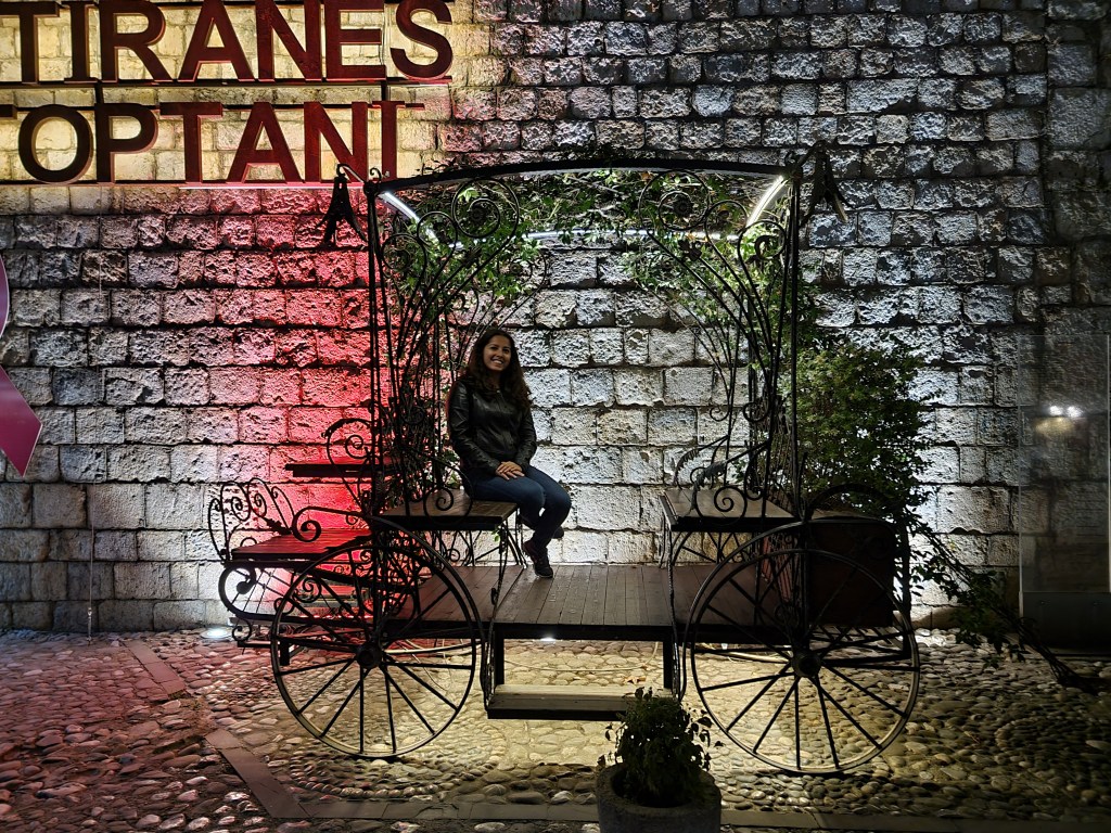 Il faisait déjà nuit quand nous sommes partis du musée. Nous sommes rentrés à l’appartement pour nous reposer un peu avant de partir au restaurant. Nous avons décidé de manger au restaurant Era dans le quartier de Blloku, qui nous avait été recommandé par le proprio de l’appartement et le guide du free tour. Il était tellement bon que nous avons mangé ici deux fois, chose qui est très rare quand nous voyageons car nous aimons découvrir des nouveaux restaurants à chaque fois.
