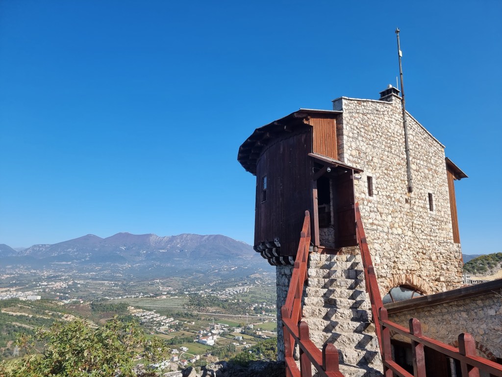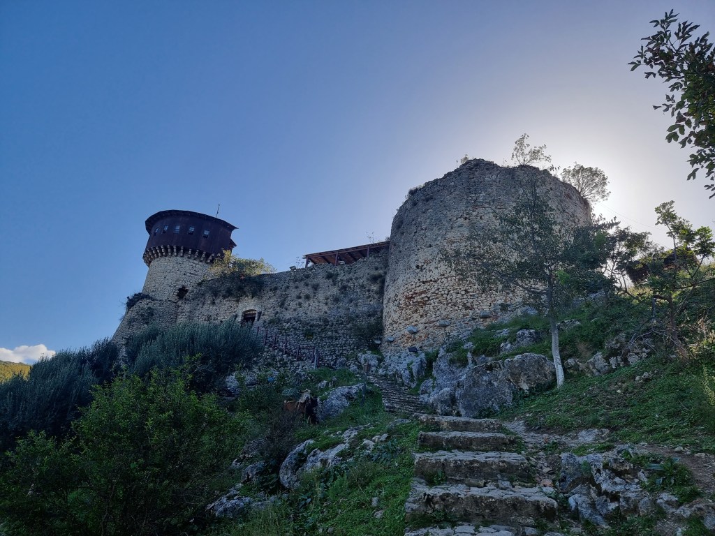 Une fois dans notre voiture, nous avons pris la route en direction du château de Petrelë. Ce château perché en haut d’un rocher est vraiment sympa, ainsi que le village qui l’entoure. Pour arriver ici, il faut compter une petite demi-heure. Le premier château a été construit entre le 3ème et 4ème siècle, mais a subi plusieurs modifications ainsi que des destructions. Le bâtiment actuel date du XVème siècle. Vous pouvez aussi trouver un restaurant sur place, avec une vue imprenable sur la vallée.