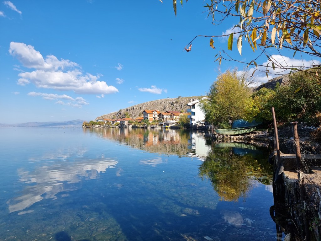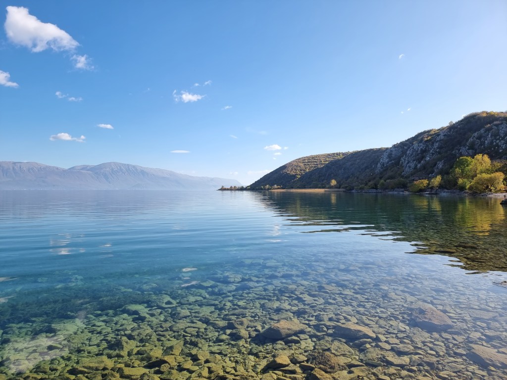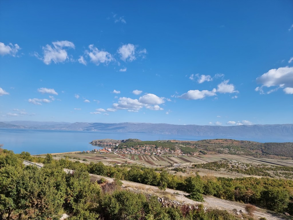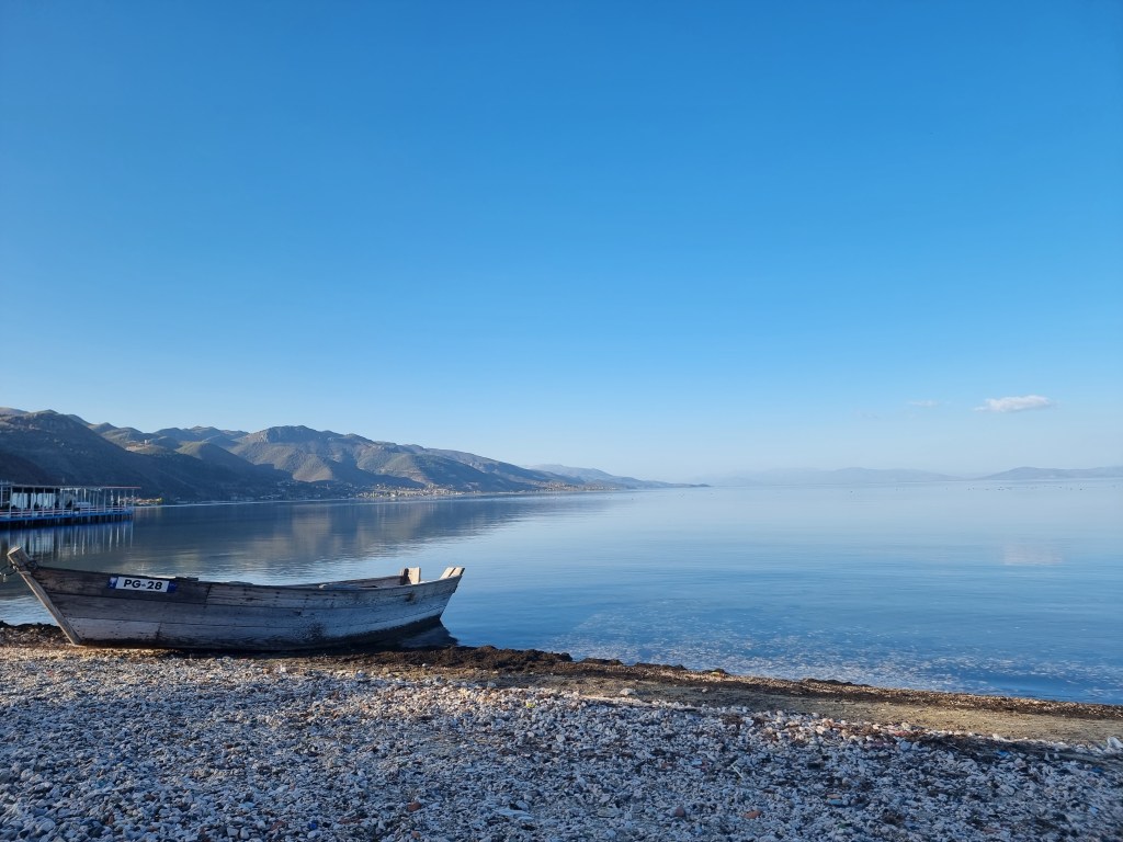 Nous avons repris la route en direction du lac Ohrid cette fois-ci. Ce lac est le plus vieux en Europe et aussi un des lacs avec le plus de biodiversité: plus de 200 espèces endémiques vivent par ici. Le lac est partagé entre l’Albanie et la Macédoine du Nord, cette deuxième abritant la plus grande partie du lac. De Petrelë, il faut compter 2h de route pour atteindre le premier village au bord du lac, Lin.