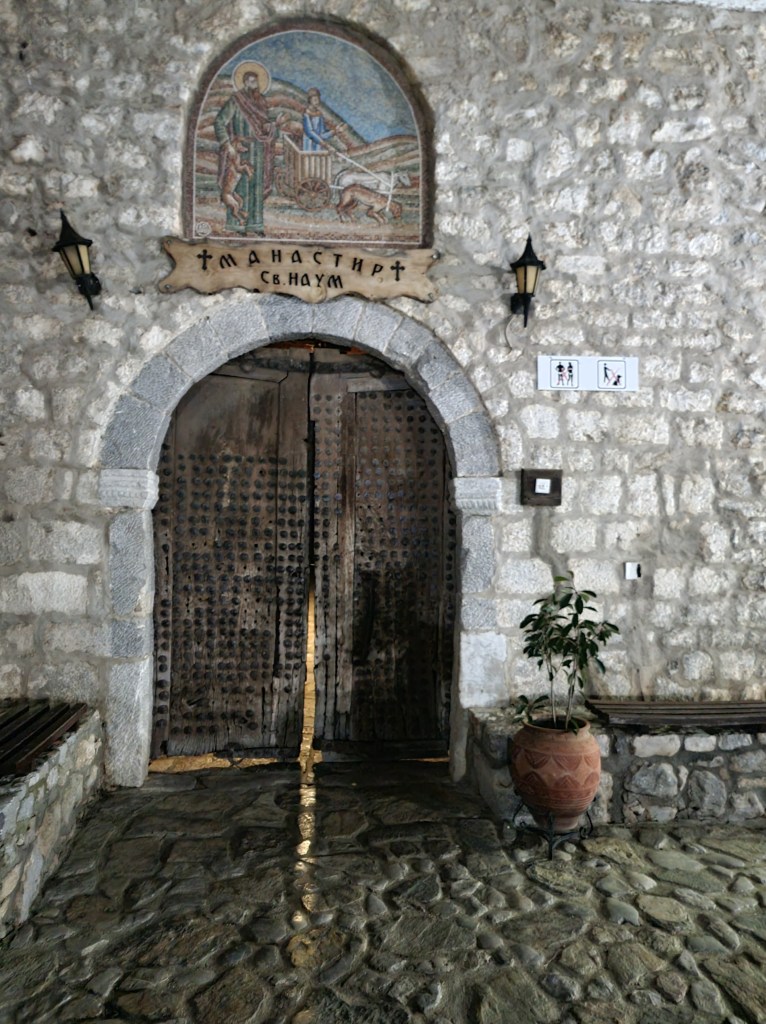 Quand j’étais en train d’organiser notre journée au lac Ohrid, j’avais remarqué un monastère qui avait l’air vraiment sympathique juste après la frontière avec la Macédoine du Nord et j’avais vraiment envie de le visiter. En discutant avec l’autre couple, j’ai découvert qu’ils avaient aussi envie d’y aller. Nous avons repris la voiture et nous l’avons garé juste avant la frontière, car nous n’avions pas le droit de sortir du pays avec.