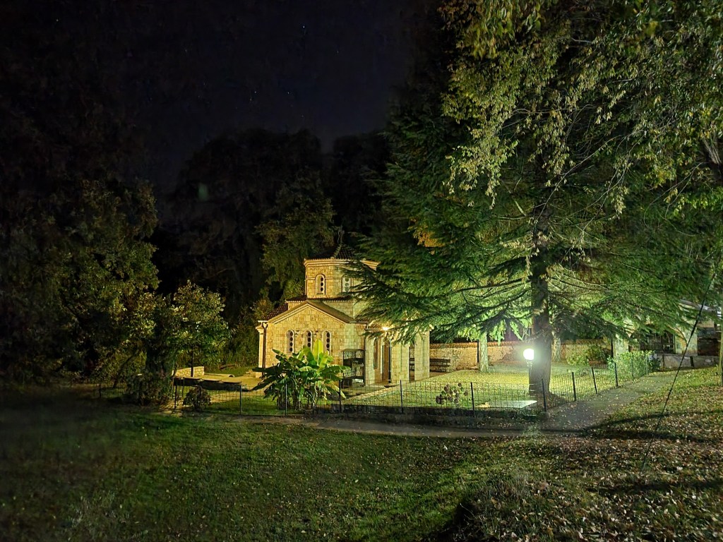 Finalement, elle est restée avec les douaniers et nous sommes partis en direction du monastère. Nous avons eu beaucoup de mal à trouver le chemin, car il faisait déjà nuit noire. Après avoir demandé la route aux douaniers, nous avons enfin trouvé un petit chemin de terre qui nous a amené au monastère.