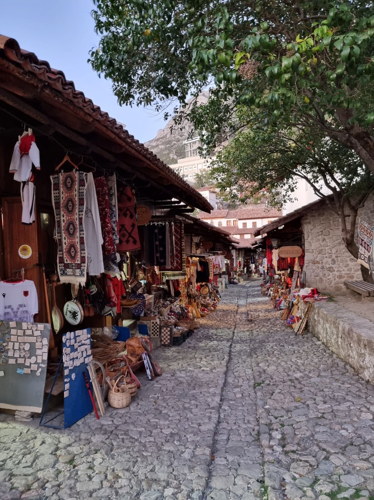 Après avoir fini notre repas, nous avons repris la route en direction de Krujë. Ce village médiéval est très célèbre par son château, le musée Skanderbeg ainsi que son ancien bazar (datant de plus de 400 ans). Nous y sommes arrivés vers 17h00 et la nuit commençait à tomber. Malheureusement, quand nous avons atteint le bazar, une bonne partie des magasins était déjà fermés. On était les seuls à se promener sur place et nous nous sommes sentis un peu harcelés, ce qui ne m’a pas trop plu.