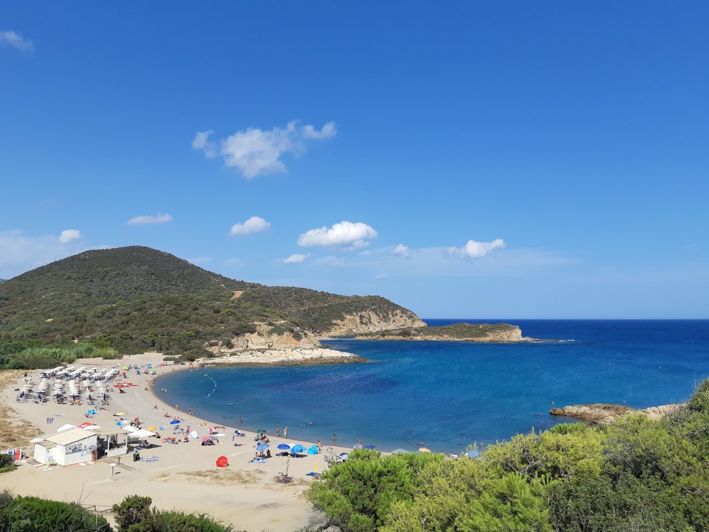 Dès notre arrivée à Pula, nous avons déposé nos sacs chez notre AirBnb et sommes partis découvrir la plage la plus proche, qui était quand même à plus de 2km. Il s’agissait de la Spiaggia di Nora. Personnellement, je n’ai pas trouvé cette plage spécialement jolie et il y avait beaucoup trop de monde pour mon goût… Par contre, il avait une zone archéologique juste à côté de cette plage et cela avait l’air intéressant. Nous nous sommes dit que nous viendrions plus tard, mais malheureusement nous n’avons pas eu le temps.