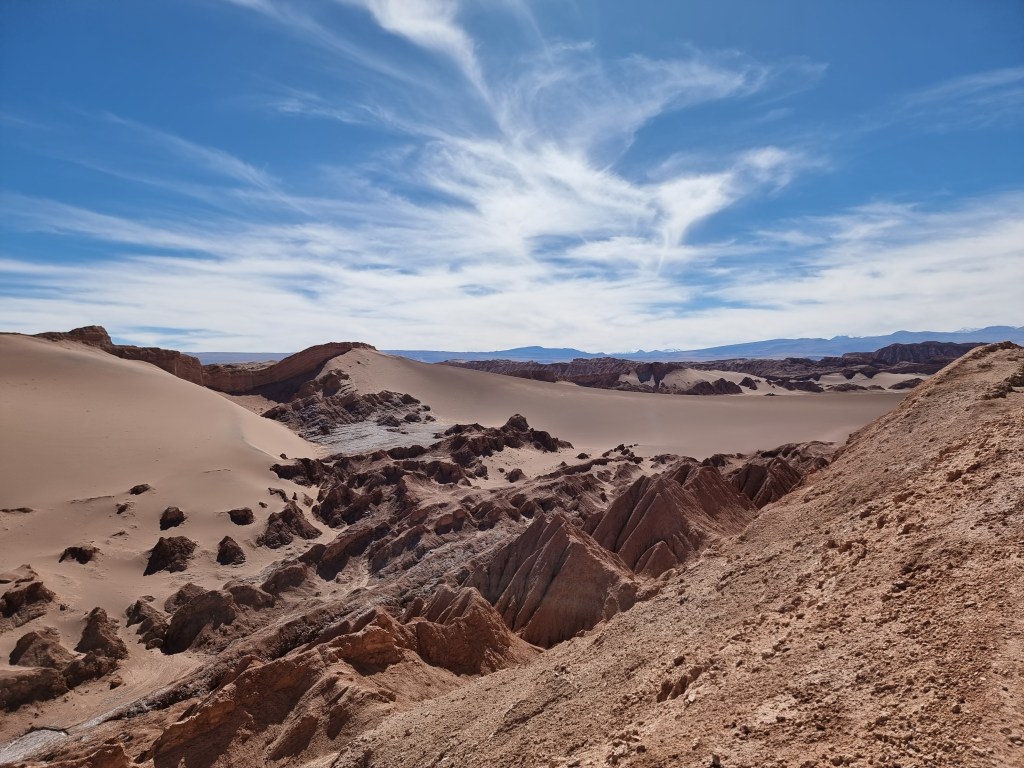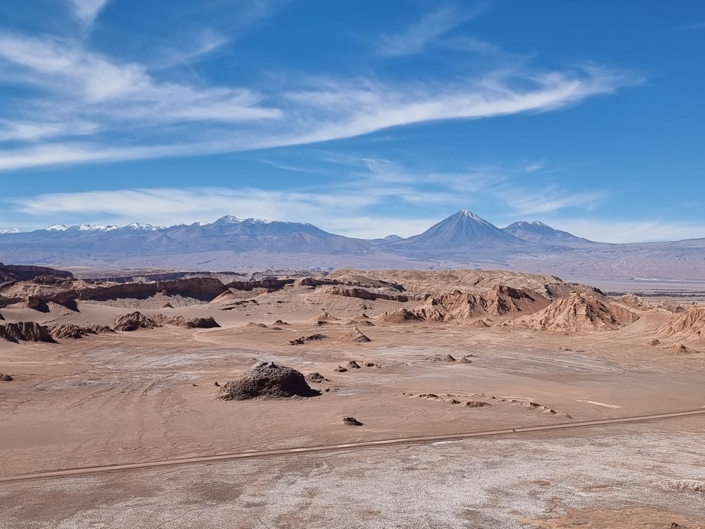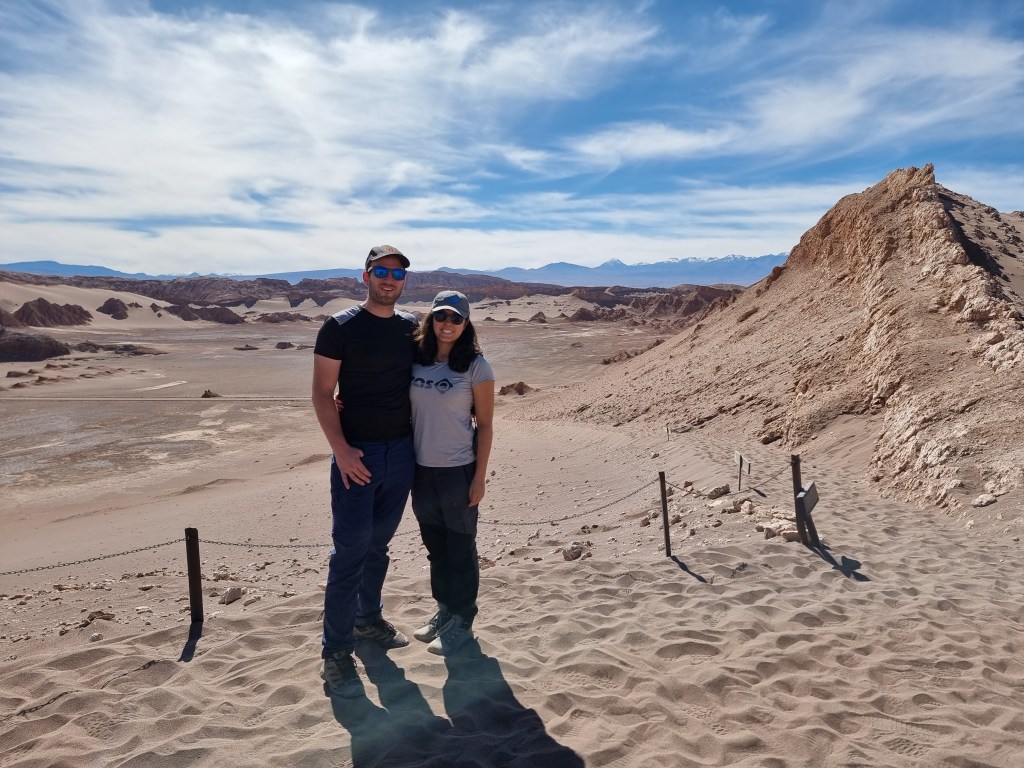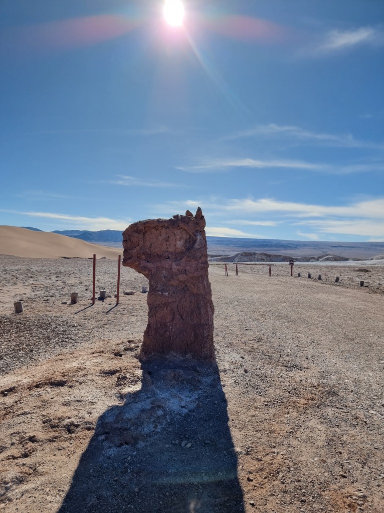 Nous sommes arrivés au désert de l’Atacama en fin de journée. Nous n’avons donc pas vu grande chose en arrivant. Ce jour, nous nous sommes levés assez tôt pour commencer à explorer le désert. Au début, je comptais visiter les Lagunes de Baltinache, mais nous avons décidé de faire le Valle de la Luna à la place.