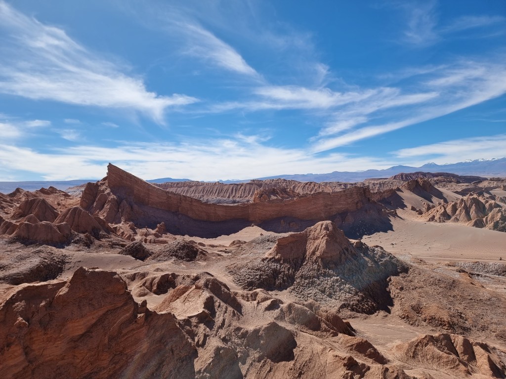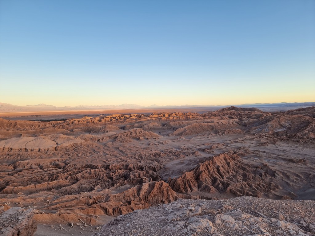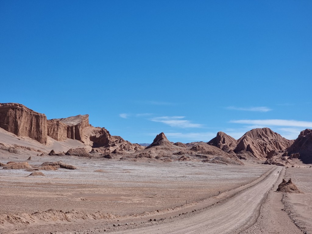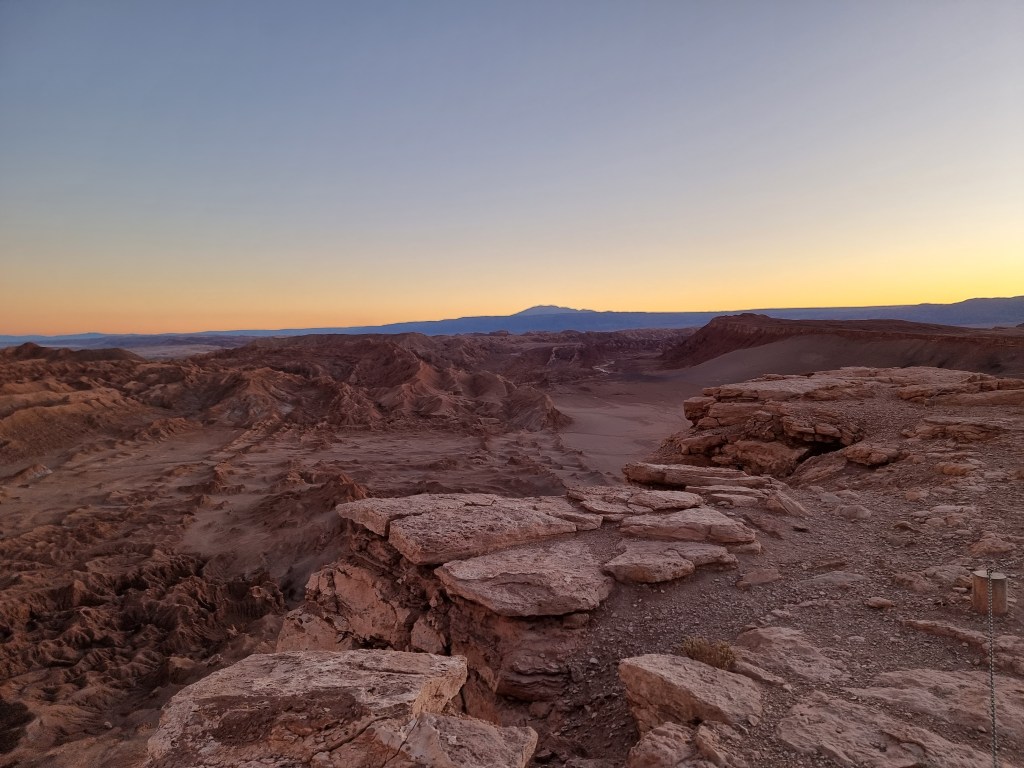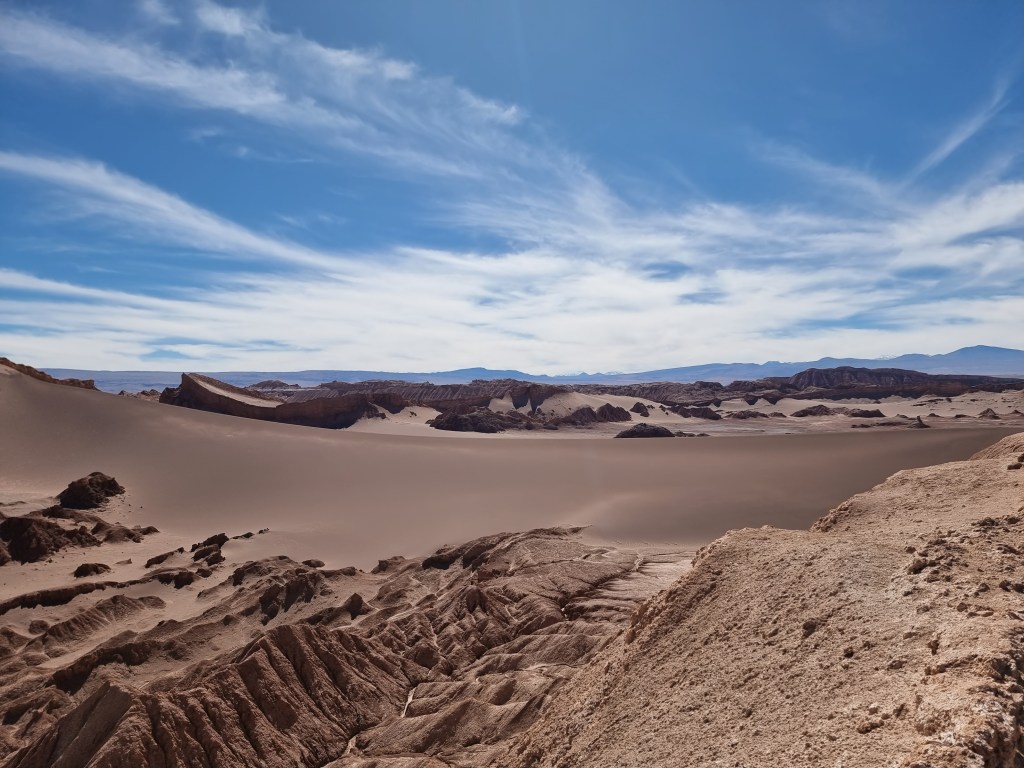 Nous sommes arrivés au désert de l’Atacama en fin de journée. Nous n’avons donc pas vu grande chose en arrivant. Ce jour, nous nous sommes levés assez tôt pour commencer à explorer le désert. Au début, je comptais visiter les Lagunes de Baltinache, mais nous avons décidé de faire le Valle de la Luna à la place.