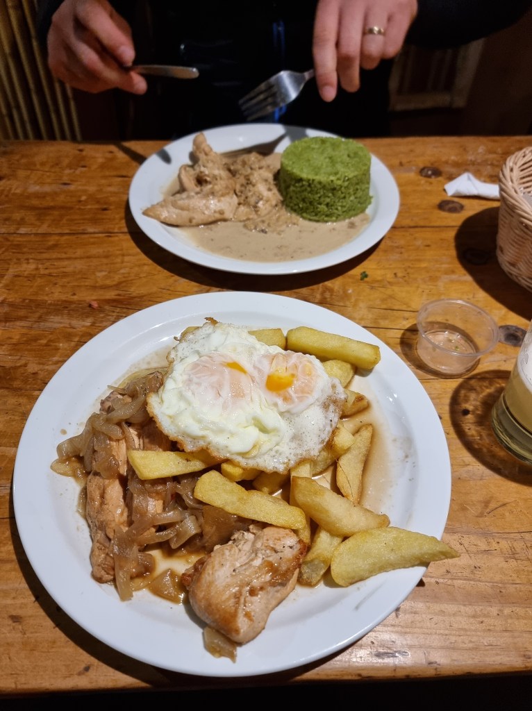 Pour clôturer la journée, nous sommes allés manger au Barros Restaurante. Ce restaurant/bar est assez rustique et sert quelques plats simples. J’ai choisi le ‘Pollo a lo Pobre‘ un plat chilien traditionnel. Il n’était pas très beau visuellement mais au niveau du goût il était ok. On a aussi commandé des piscos sour, qui étaient au top! Il y avait de la musique en live, avec plusieurs groupes qui ont joué au long de la soirée.