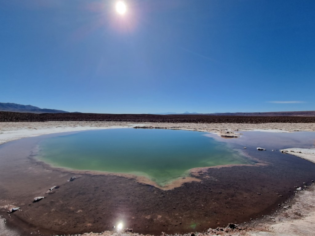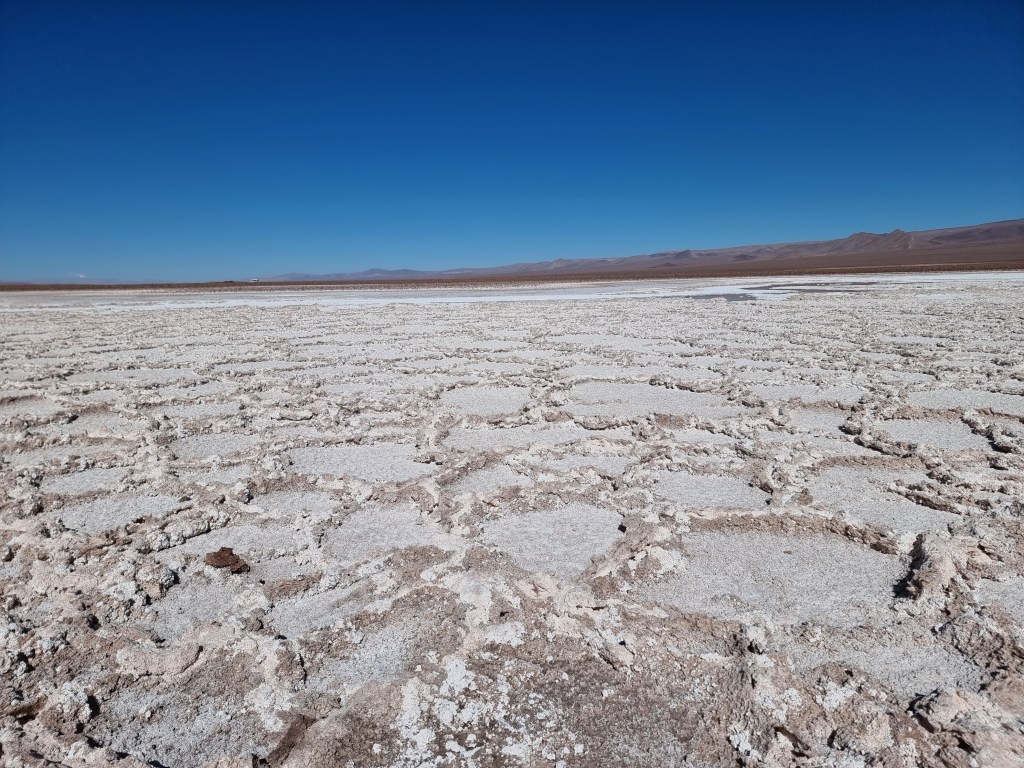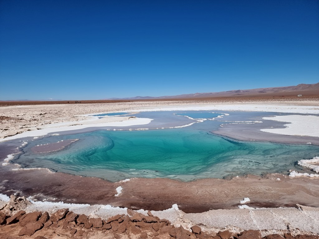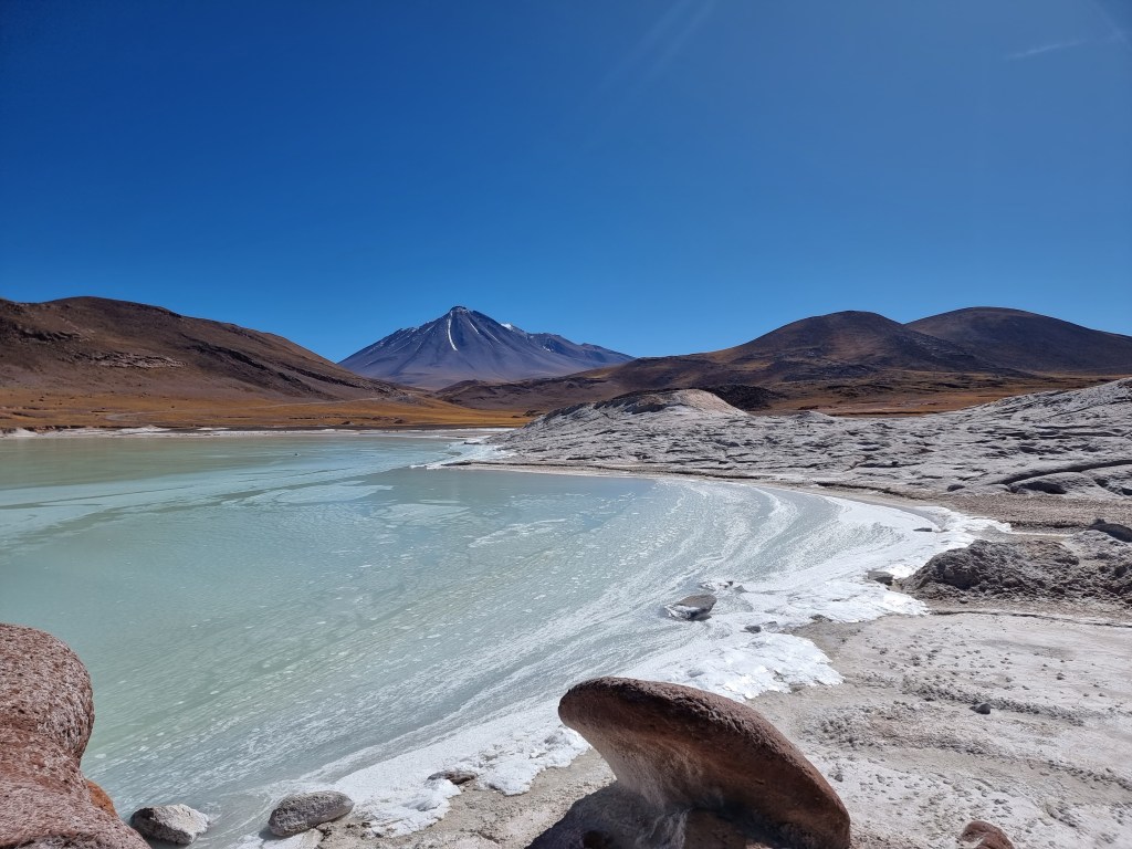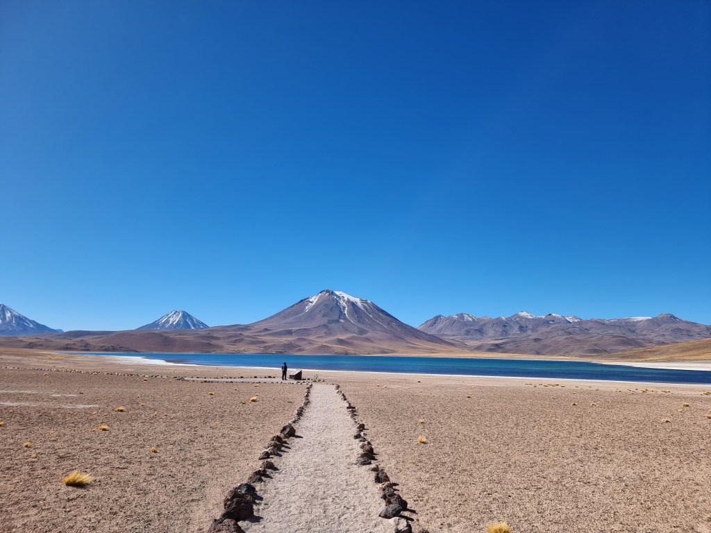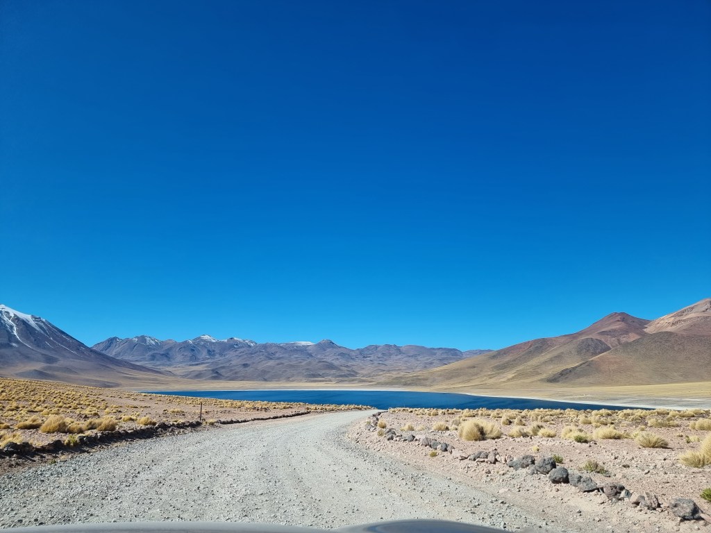 La première lagune que nous pouvons visiter est celle de Miñiques, la plus grande. La vue est, encore une fois, phénoménale: l’eau est d’un bleu éclatant, les bords du lac sont recouverts de sel et le tout est entouré de montagnes.