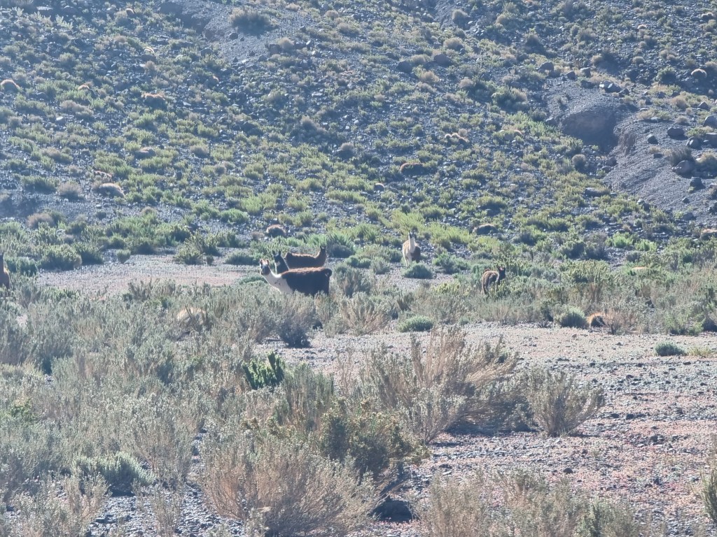 Nous avons encore croisé un groupe de vicuñas sur la route, dont 2 qui étaient en train de se battre. Nous avons croisé aussi un petit groupe de lamas, qui devaient être domestiquées à mon avis.