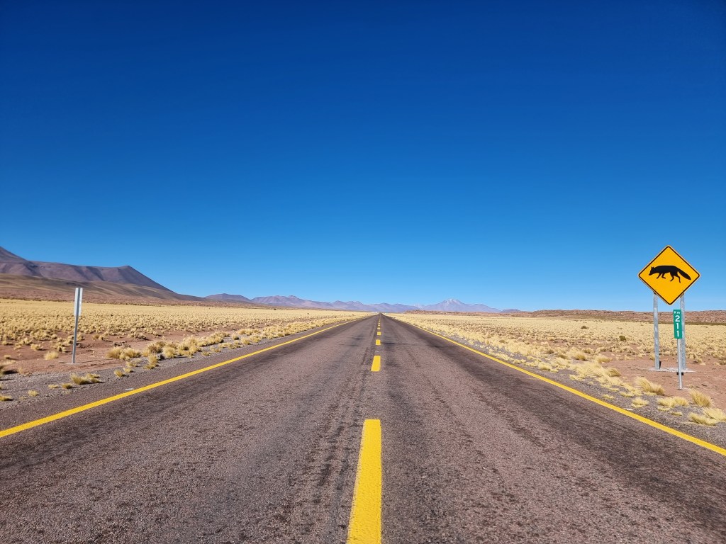 Il était temps de reprendre la route en direction de la dernière destination du jour: la Lagune Chaxa. La route que nous avons emprunté était une énorme ligne droite, assez impressionnante!