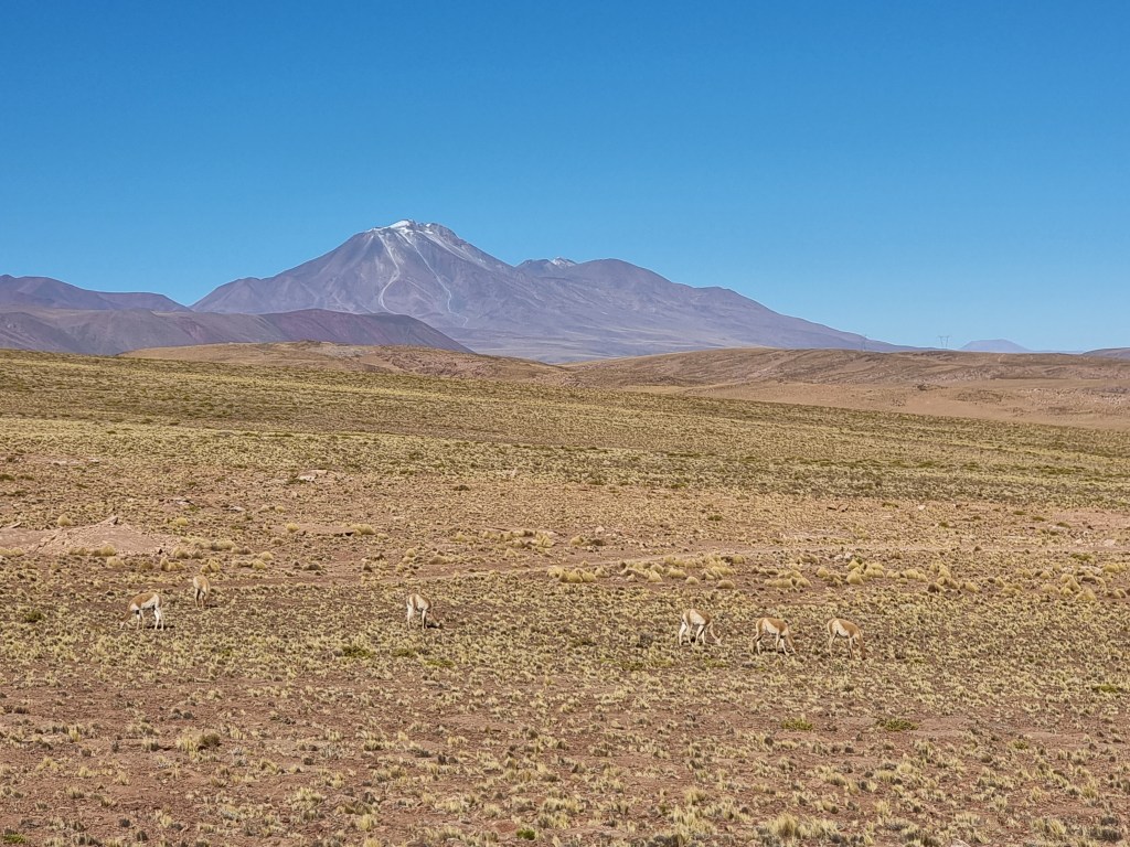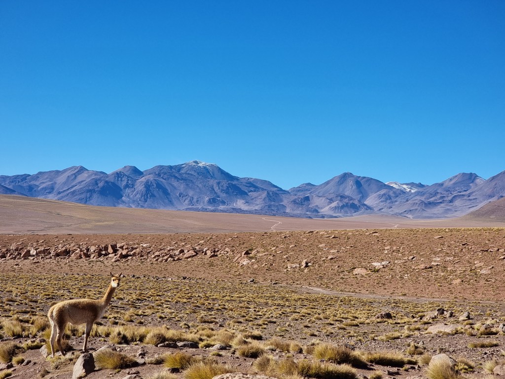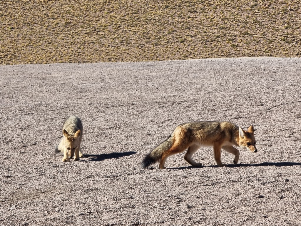 De notre côté, nous avons choisi de visiter Piedras Rojas d’abord pour parcourir la plus grande partie du trajet le matin. La route entre Socaire et Piedras Rojas est incroyable et nous avons pu croiser plein d’animaux. Nous avons aperçu des vicuñas, des émeus et des renards. Il faut faire attention car des fois les animaux se trouvent au milieu de la route.