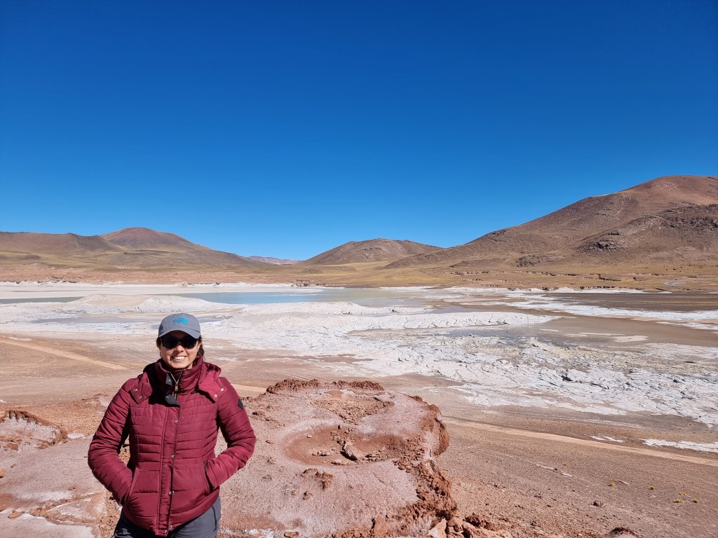 Avant de partir vers les Lagunas Altiplanicas, mon chéri a voulu visiter une petite lagune qui se trouvait pas très loin. Nous y sommes allés mais je ne vous le recommande pas vraiment, la lagune n’étant pas exceptionnelle.