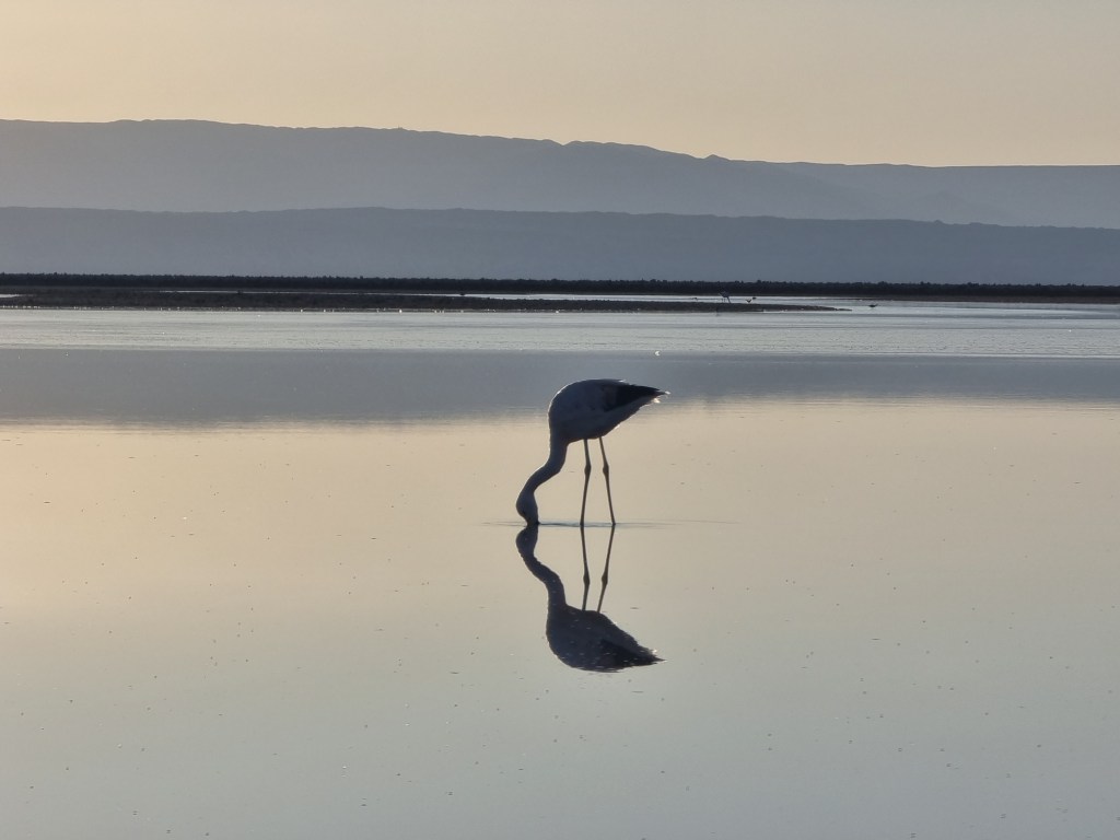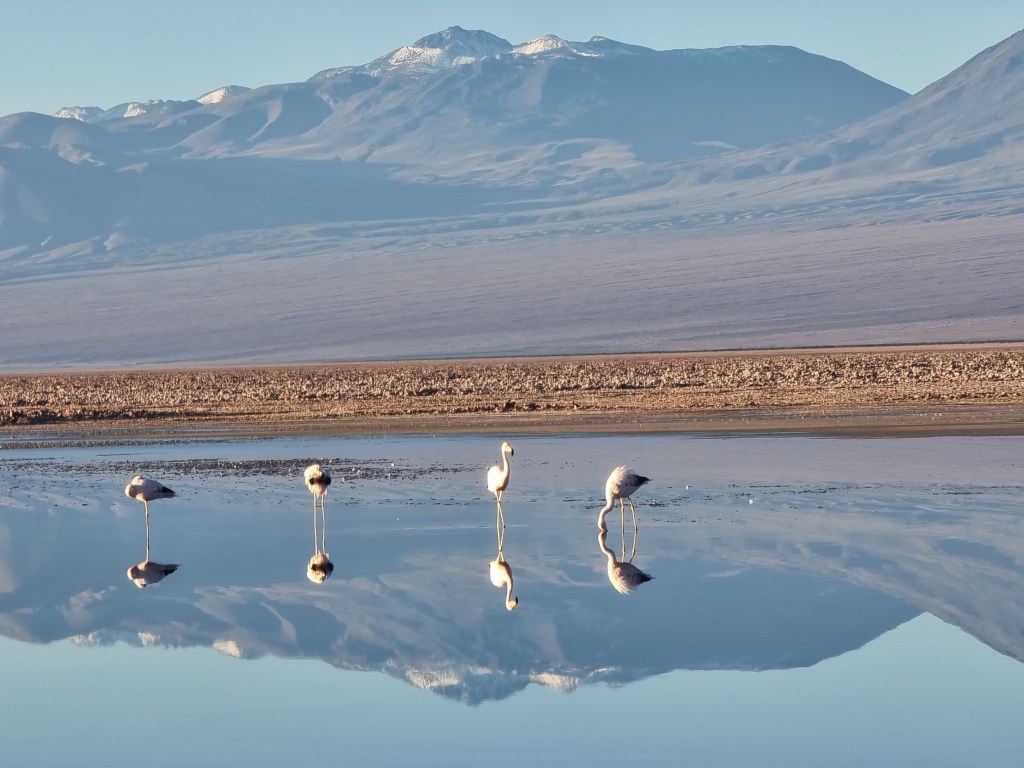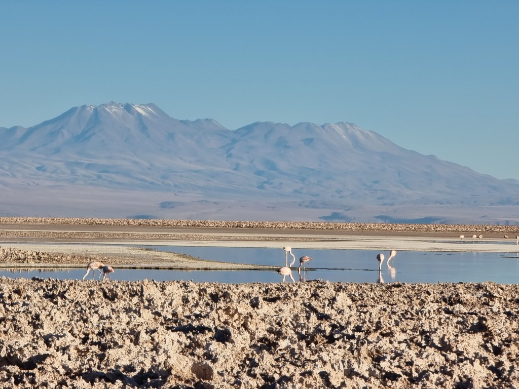 La Lagune Chaxa est connue surtout grâce à sa population de flamants roses. Dans ses eaux, il y a plein de mini crevettes qui sont la base de l’alimentation de ces animaux. Il est possible d’apercevoir 3 espèces différents de flamant rose ici: le James, le chilien et l’andin.
