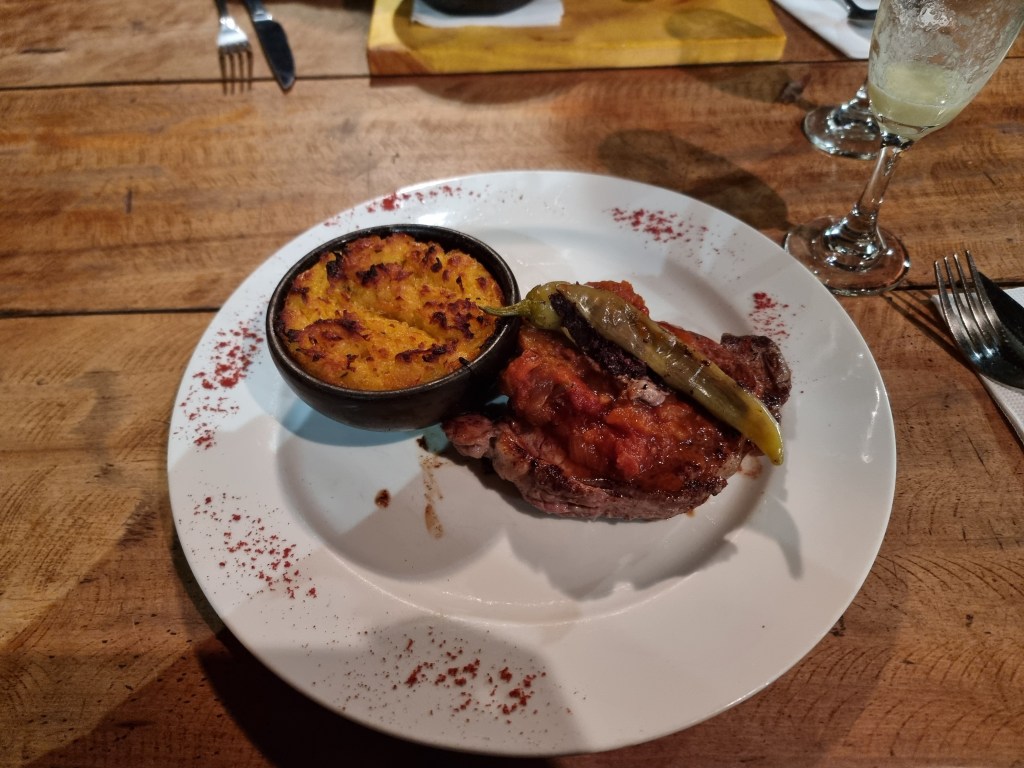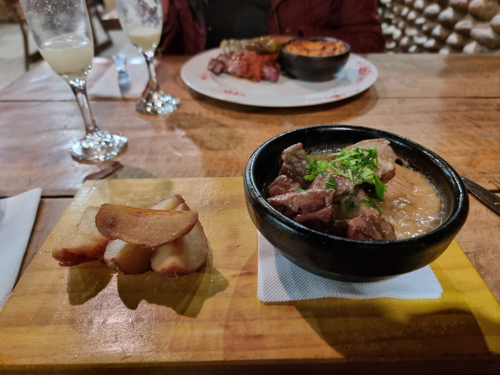 Pour commencer, nous avons pris un ceviche au saumon qui était délicieux! Ensuite, j’ai choisi le lomo vetado rustico accompagné d’une espèce de gratin au maïs. Mon chéri a choisi le lomo vetado au Pil-Pil, un épice traditionnel de la région. Pour boire, on a pris un pisco sour chacun et nous avons eu pour un total de 85€ à deux.