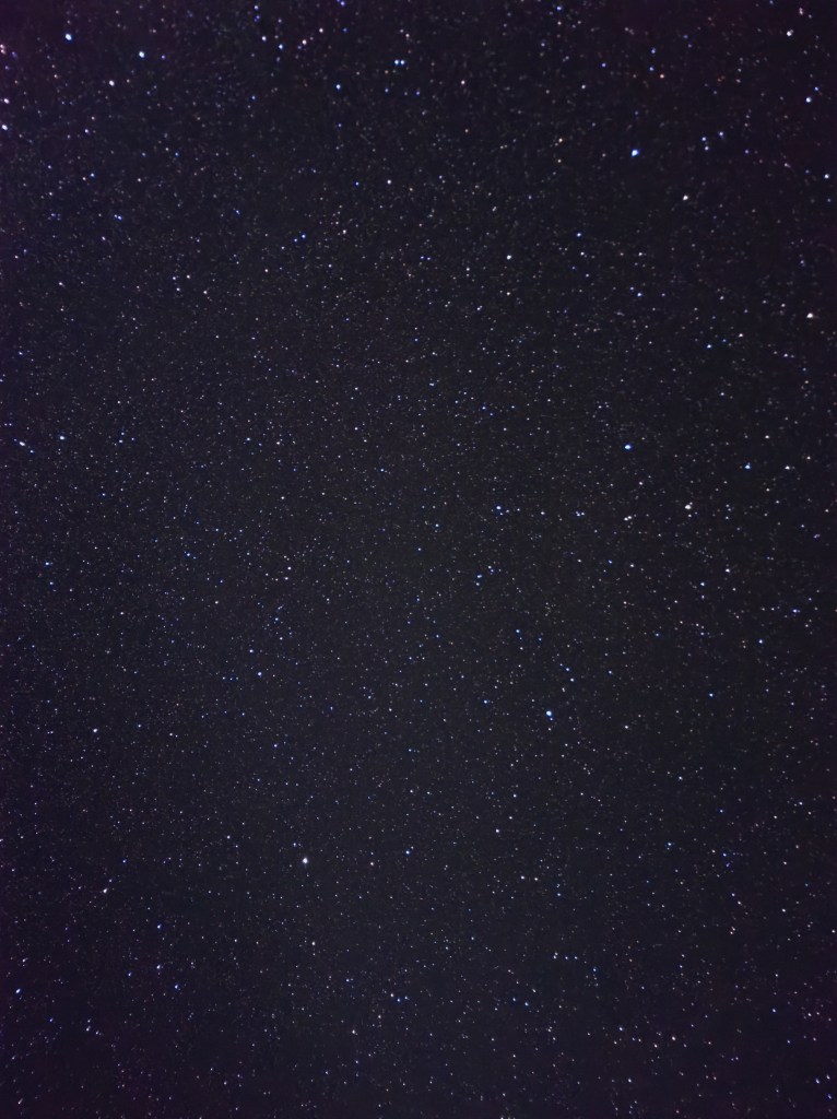 Il faisait encore nuit noire et la route n’était pas la meilleure… Au début, ça se passait plutôt bien, sauf quelques tronçons qui étaient un peu bosselés. Malgré l’heure, il avait déjà pas mal de voitures et vans qui empruntaient la même route que nous. Vers le milieu du chemin, nous nous sommes arrêtés pour observer les étoiles. Le désert de l’Atacama est un des meilleurs lieux au monde pour apprécier le ciel nocturne, grâce à son altitude, son manque de pluie (et conséquemment de nuages) et la faible concentration de lumière artificielle. Je vous laisse une photo pour vous donner une idée de ce que vous pouvez observer pendant la nuit: