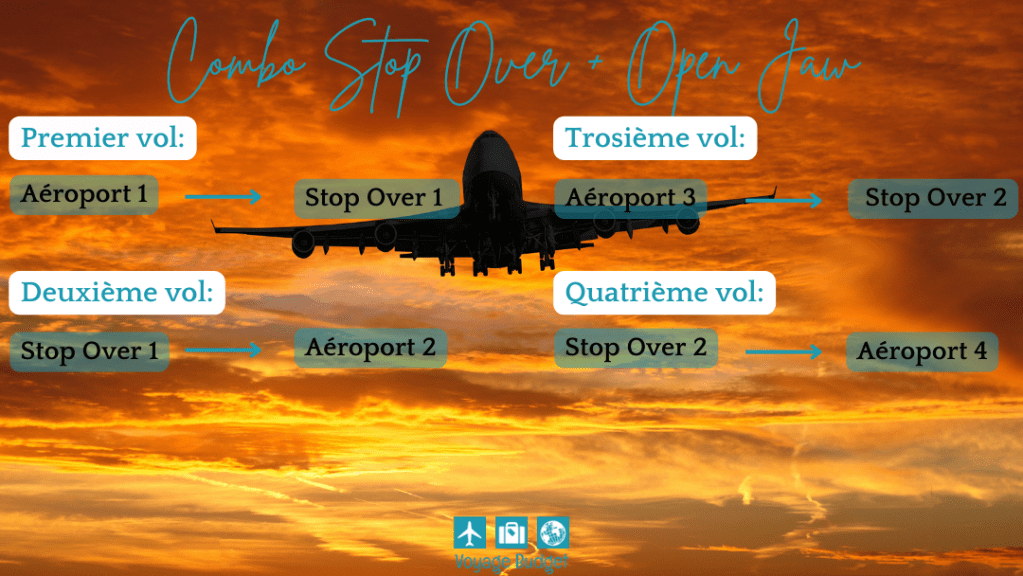 Si vous avez assez de temps à dédier à votre voyage et vous voulez visitez un maximum de destinations avec votre billet A/R, vous pouvez combiner des stop over avec des open jaw. Cela vous permettra de visiter jusqu’à 5 destinations différentes si vous combinez un stop over double et un open jaw double.