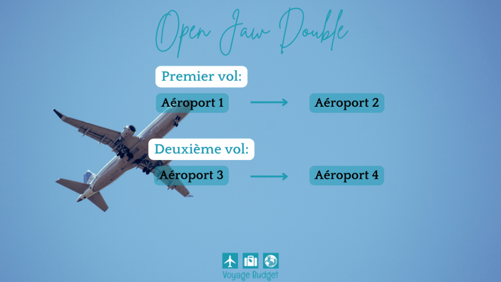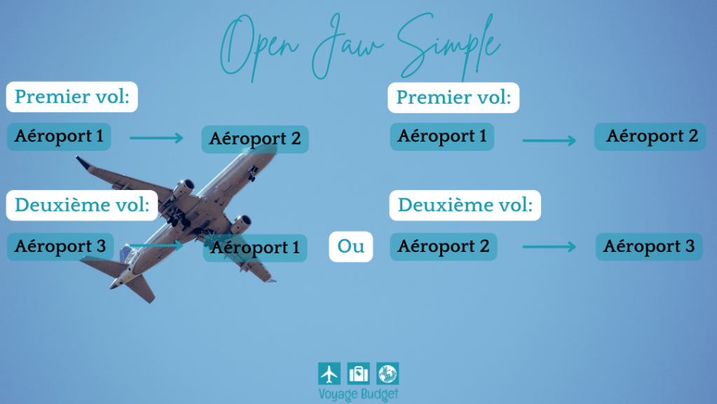Dans un open jaw simple, seulement un des aéroport est modifié, soit à l’aller, soit au retour (comme dans l’exemple que je vous ai donné ci-dessus).