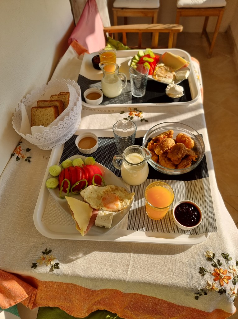 Après le coucher du soleil, nous sommes partis nous installer dans notre AirBnb qui se trouvait dans les hauteurs de la ville. Il est important de savoir que Saranda est une ville assez escarpée et ça monte pas mal, donc il vaut mieux loger en bord de mer. Malgré les pentes, en général il est assez simple de rejoindre le centre ville à pied, ce que nous avons fait. Nous sommes partis manger dans un restaurant qui servait de la nourriture locale, mais j’étais un peu déçue. La nourriture n’était pas mauvaise et les portions étaient assez généreuses, mais il manquait d’assaisonnement.